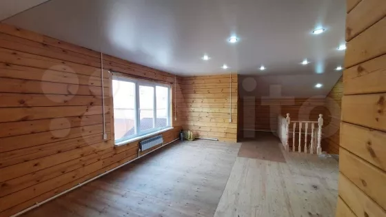 Дом 150 м² на участке 5 сот. продаётся в Шелехове. . Продажа дома от собственника 150кв, в Баклашах на участке 5соток с центральным хол-м водоснабжением. Брус 18*18 строганный с двух сторон, покрашен антисептиком. Планировка дома: 1этаж: прихожая, холл где будет распологаться лестница, 2 комнаты, санузел, кухня-студия. 2этаж: 2 комнаты, гардеробная, санузел, и просторная зона отдыха с большим окном. Бойлерное отопление, натяжные потолки с точечным светом, электрика в кабель-канале, Санузел полностью оборудован: водонагреватель 100литров, унитаз, ванна, раковина с зеркалом. С...