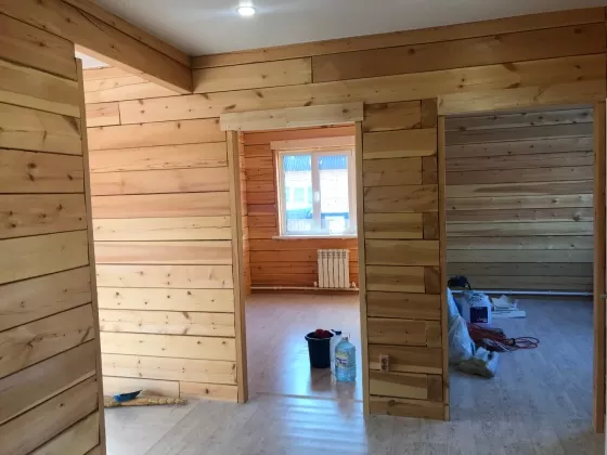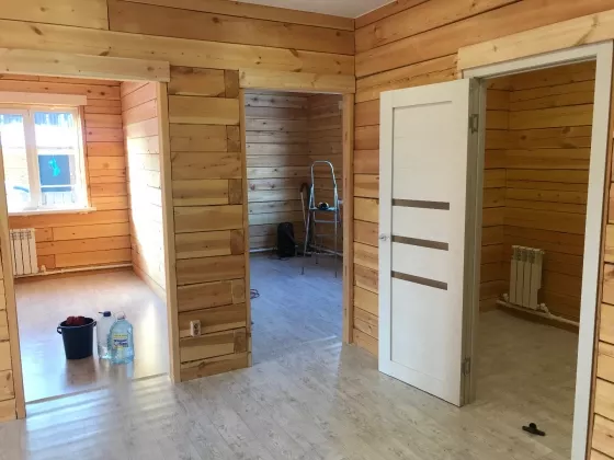 Представляем вашему вниманию небольшой и очень уютный дом в селе Баклаши ,площадью 71 м² . Дом построен из зимнего бруса 18 на ленточном фундаменте. Отопление бойлерное, установлены качественные радиаторы, везде натяжные потолки ,точечное освещение. Пол утеплён и покрыт линолеумом. Проведено центральное водоснабжение , септик 4 куба, электричество 380 В.